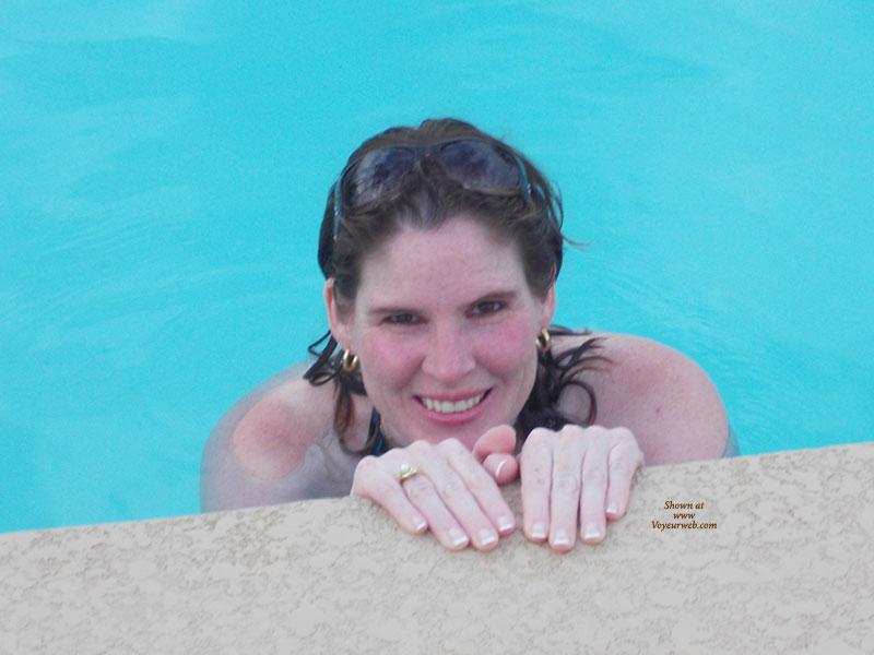 Welcome to my contri ... still on vacation, these pics were taken in the community pool. There was people passing by but nobody around. I'm wearing a new bathing suit that I had to buy cause my boobs wouldn't stay in the one I had. LOL I know not a problem. I hope you enjoy these I had a blast doing them. I liked when my boobies were floating felt kinda cool. hehehexoxoxx