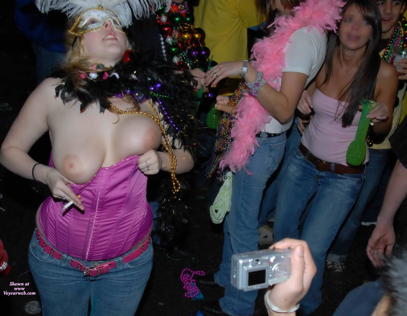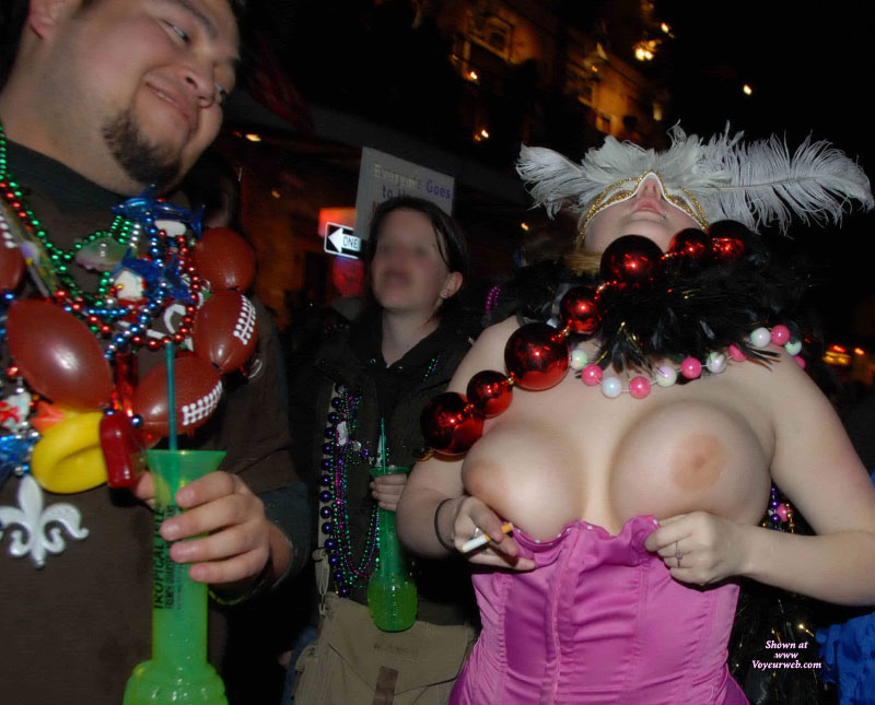 The longer you can last on the street the better the photos. As it starts to get close to midnight, the crowds know the police will close down the streets soon. and they are going to squeeze the last beads out of the last balcony throwers.